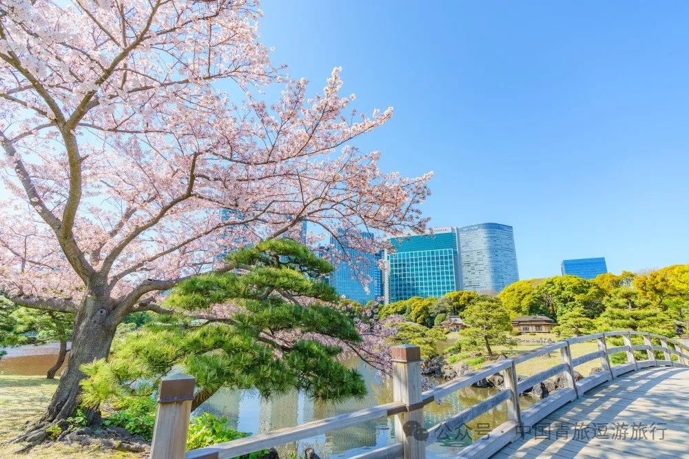 东京的都市绿洲「滨离宫恩赐庭园」,这片隐匿在办公大楼间的秘境花园,彷佛是城市中的隐世仙境。来到这里,可以沉浸于悠闲恬静的环境,并欣赏湖水倒映着盛放的樱花。
